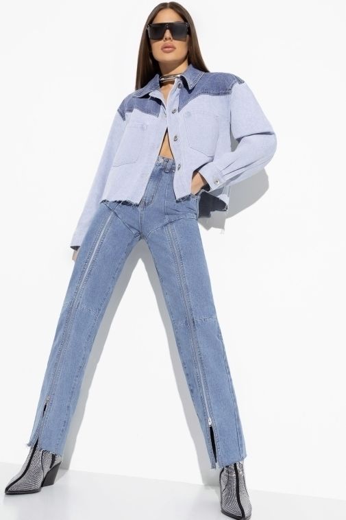 Голубые джинсы с молниями по переду от бренда Charutti, выполнены из джинсы. Классическая застёжка гульфик и пуговицы. По бокам функциональные карманы. Шлёвки под ремень. Идеальный выбор для городских модниц.
