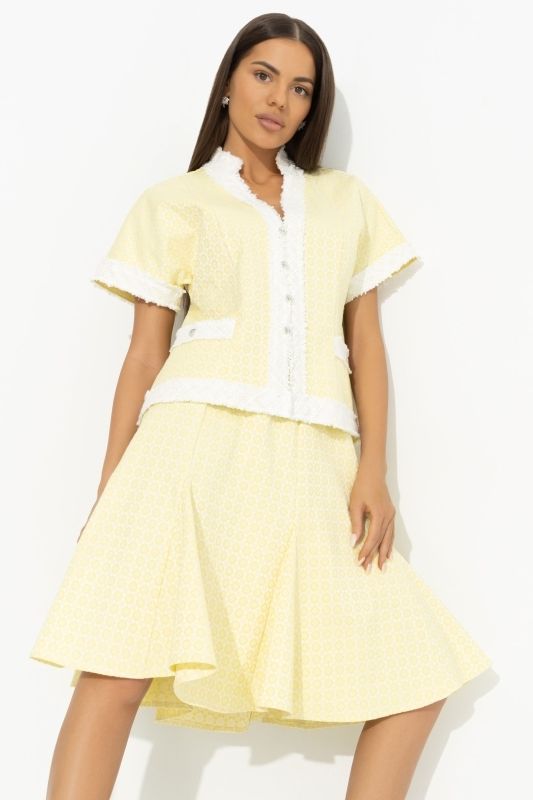 Костюм-двойка жёлтый с юбкой в стиле Шанель
