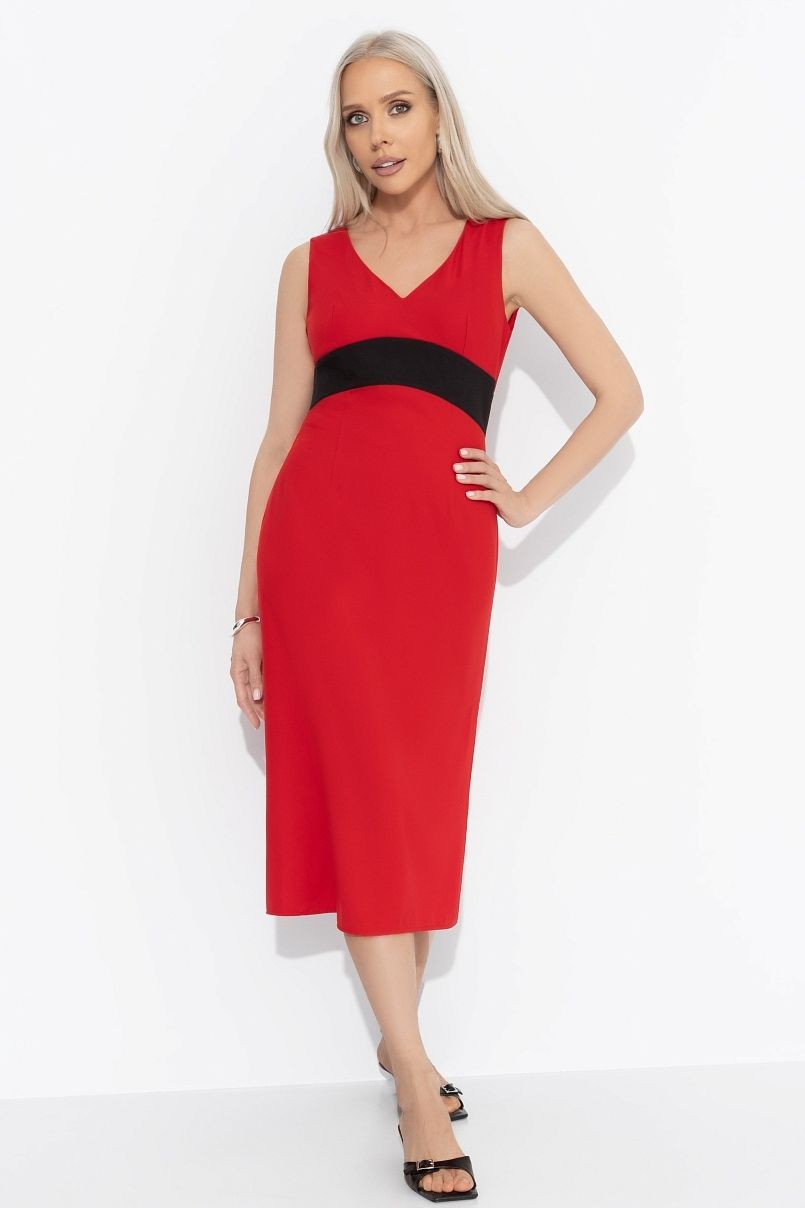 Платье-футляр красное без рукавов от компании Charutti, выполнено из костюмного полотна "Барби". Есть глубокий разрез сбоку. Глубокий вырез зоны декольте. Вырез треугольный на спинке изделия. Платье застегивается она скрытую молнию. Идеальное решение для создания стильного образа.