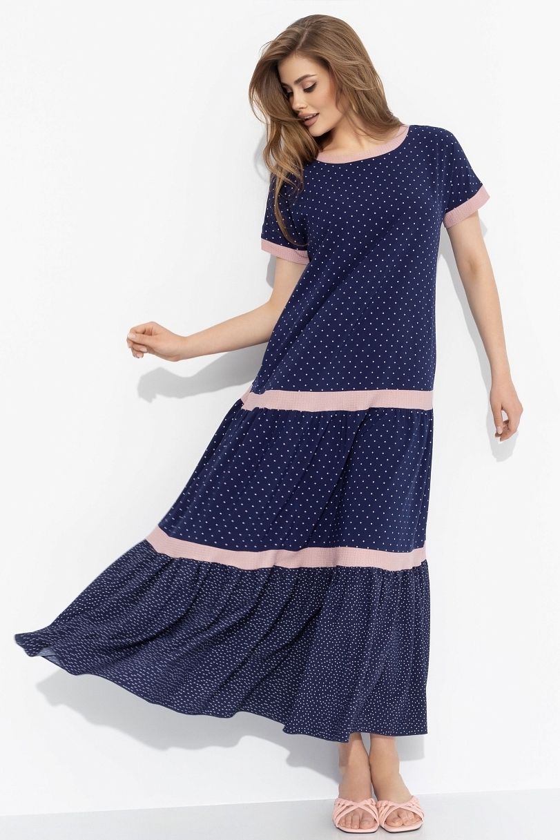 Платье синее в горошек с карманами