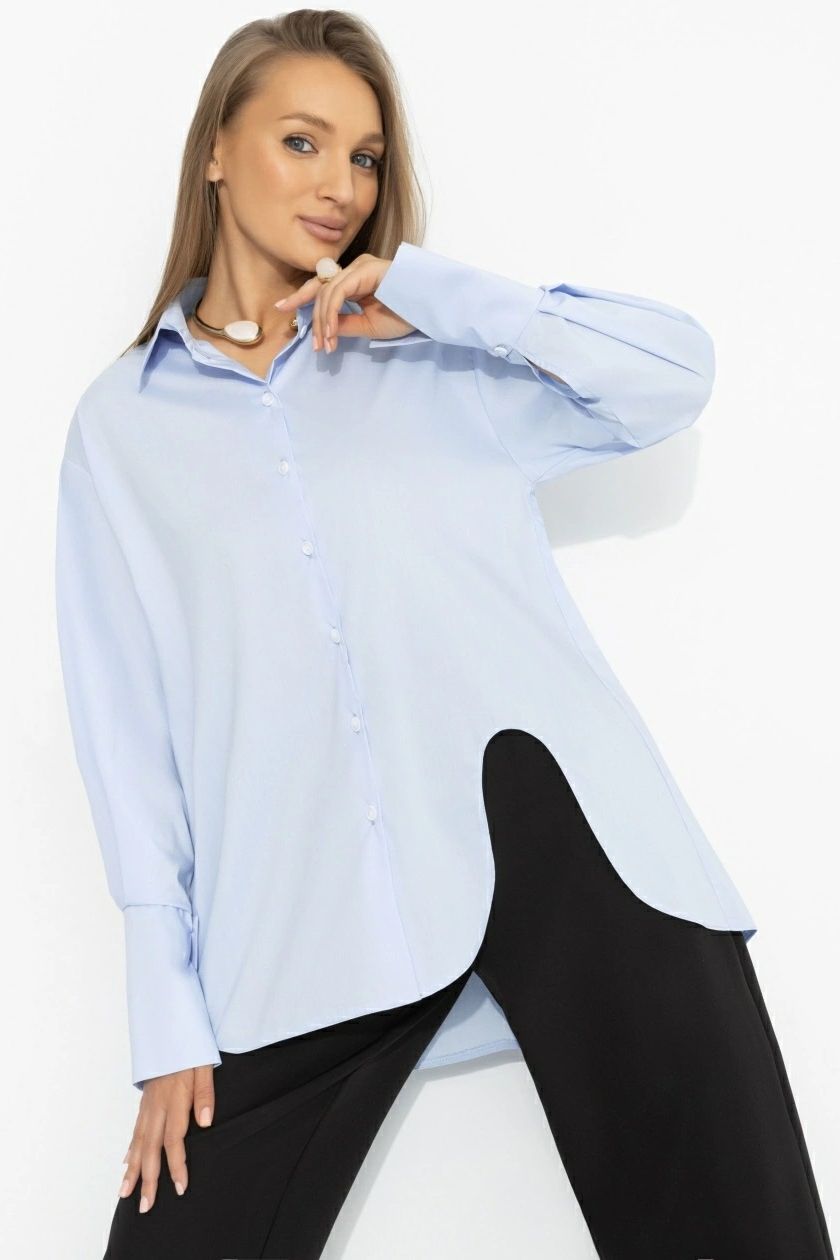 Рубашка голубая асимметричного кроя