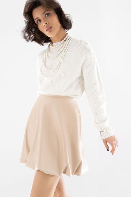Юбка короткая бежевая из экокожи от компании Charutti. Модель расклешенного кроя. Посадка на талии. Юбка застегивается на скрытую молнию сзади. Есть трикотажный подклад. Идеальный выбор для создания стильного образа.