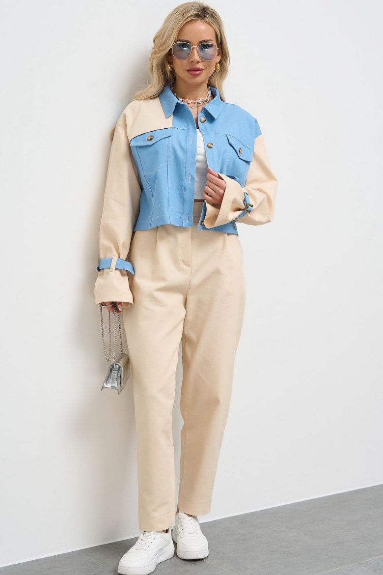 Брюки-бананы бежевые укороченные