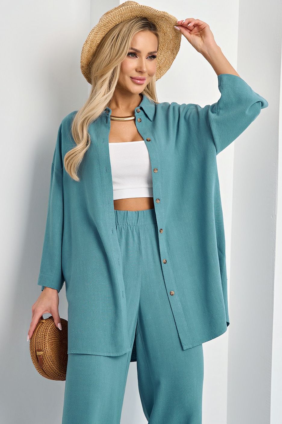 Рубашка льняная свободная от бренда Jetty выполнена в серо-голубом цвете. Воротник рубашечного типа. Широкий рукав 3/4 с широкой подгибкой, с отложным воротничком рубашечного типа.Ткань усадочная, садится после стрики, степень усадки заложена при крое. Прекрасный выбор для повседневной носки.