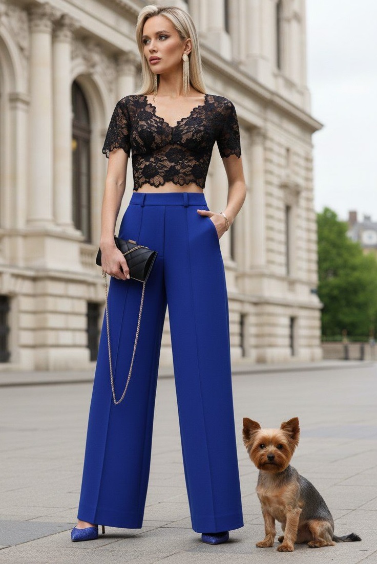 Брюки-палаццо синие с карманами Широкие возможности, браво