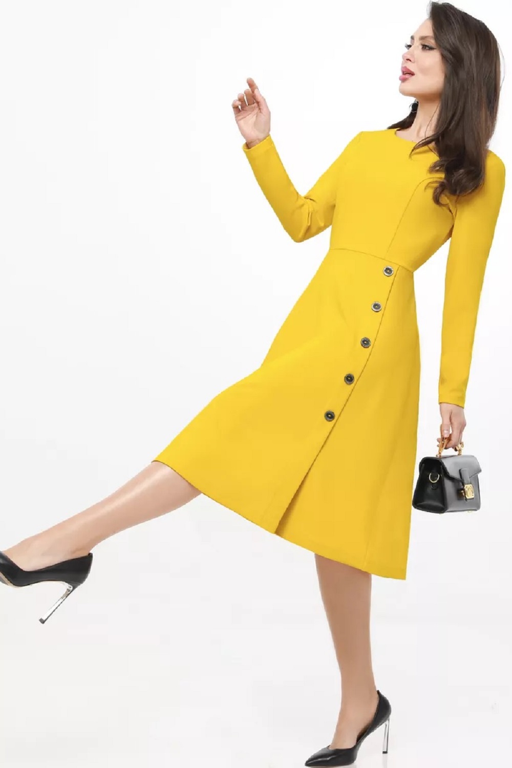 Платье трикотажное с декоративными пуговицами Главное вдохновение, яркая