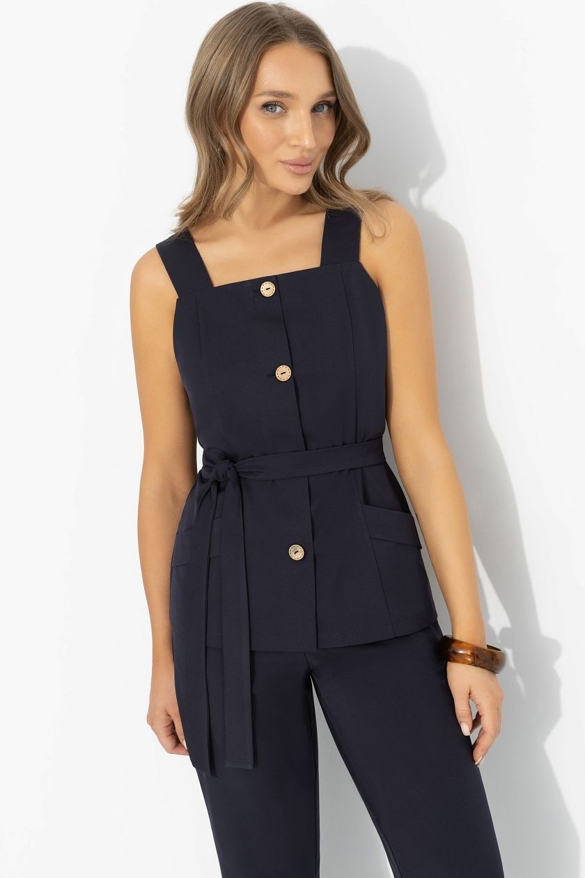 Жилет тёмно-синий с поясом