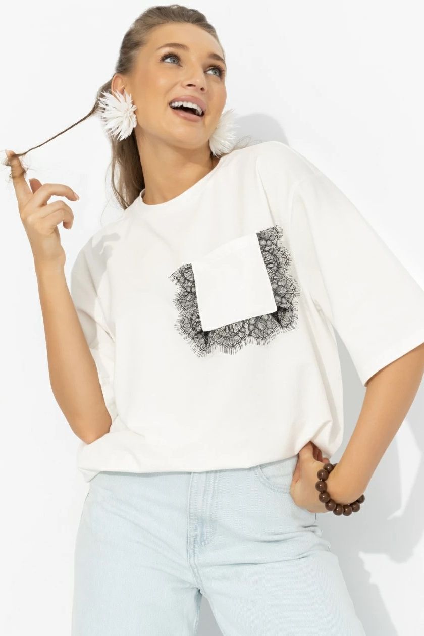 Футболка комбинированная молочного цвета