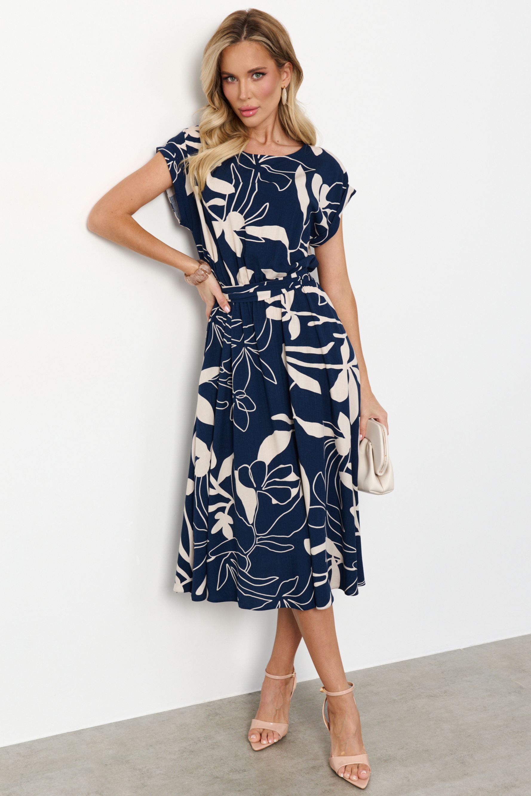 Платье миди тёмно-синее с принтом