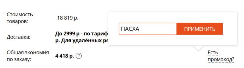 2. Примените промокод "ПАСХА".