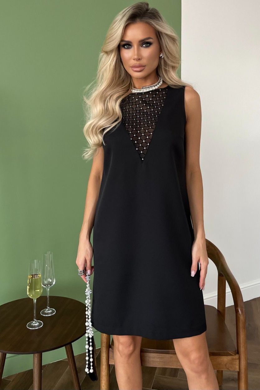 Платье короткое чёрное с декором в виде страз