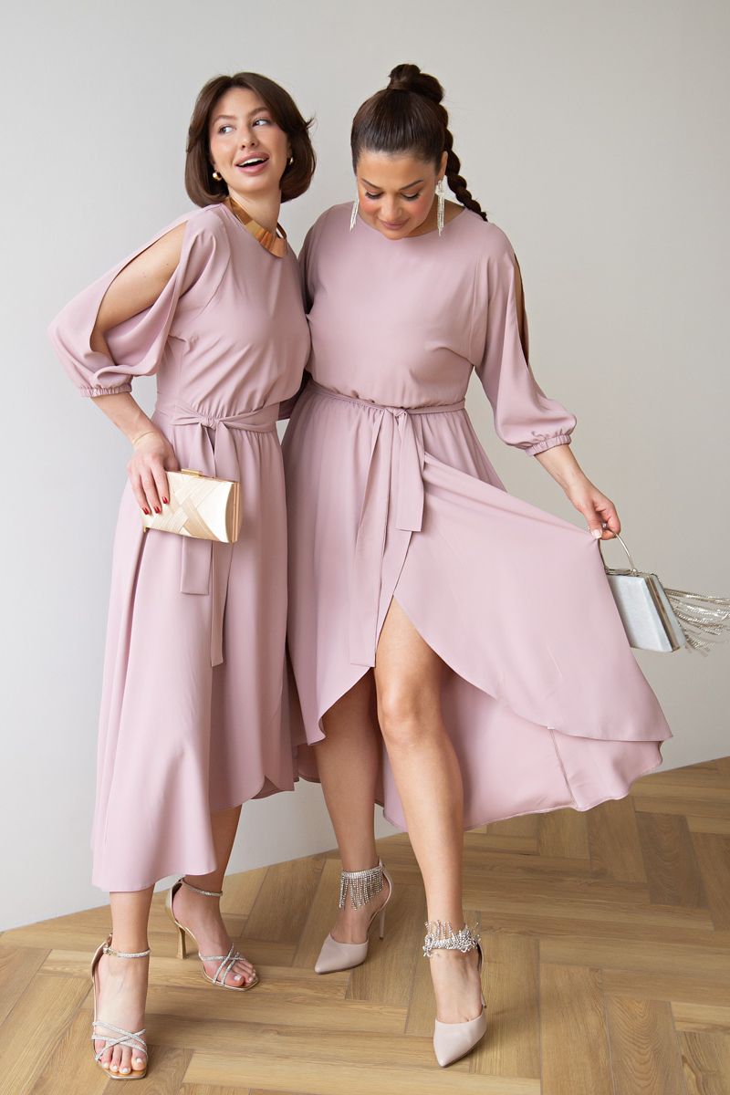 Платье праздничное макси пудрового цвета