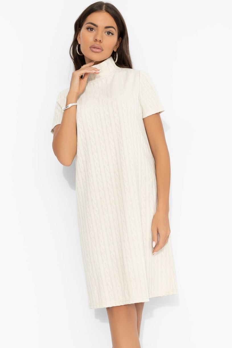 Платье бежевое вязаное от компании Charutti. Модель прямого силуэта, воротник-стойка. Втачные короткие рукава. Без застёжки. Это Ваш отличный образ, в котором вы всегда чувствуете себя уверенно.