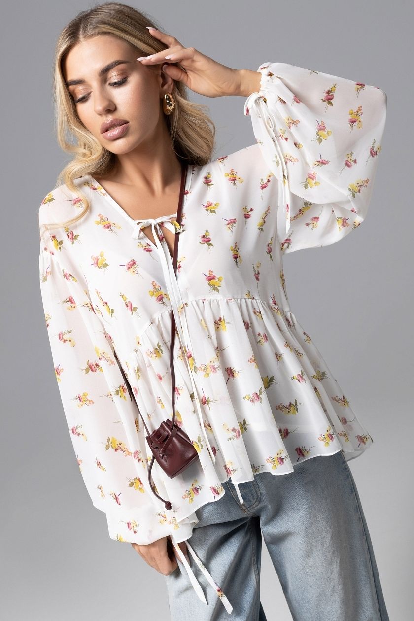 Блузка шифоновая белая в стиле бохо