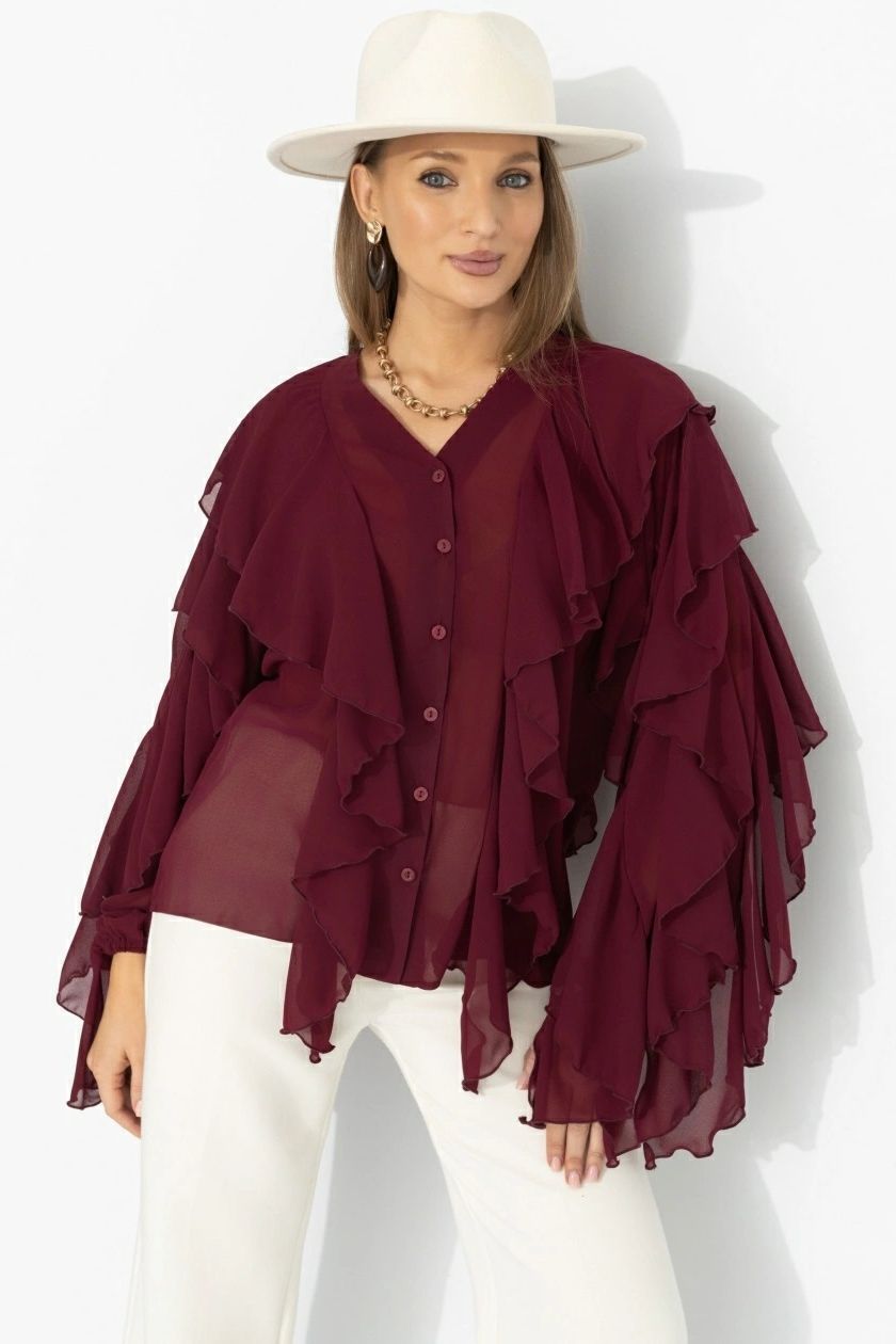Блузка эффектная из шифона бордового цвета