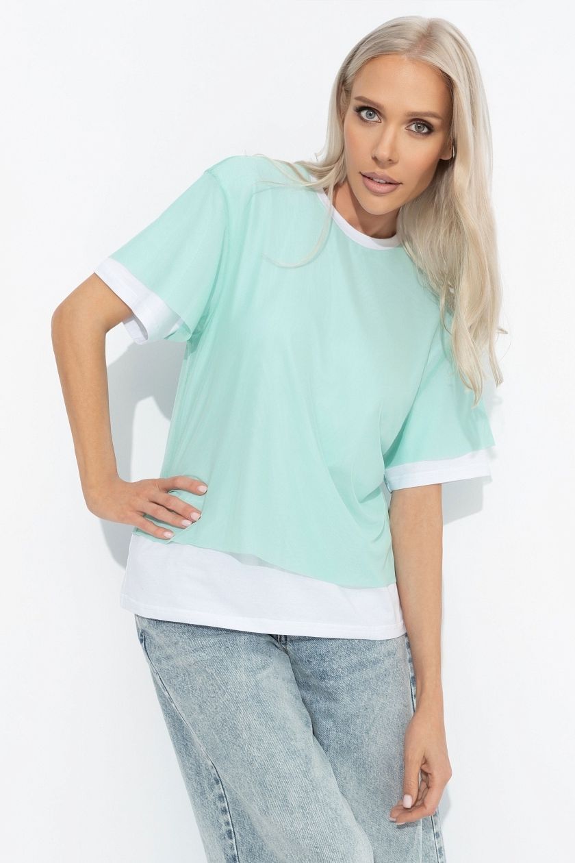 Платье А-образного силуэта пастельного зелёного цвета с поясом