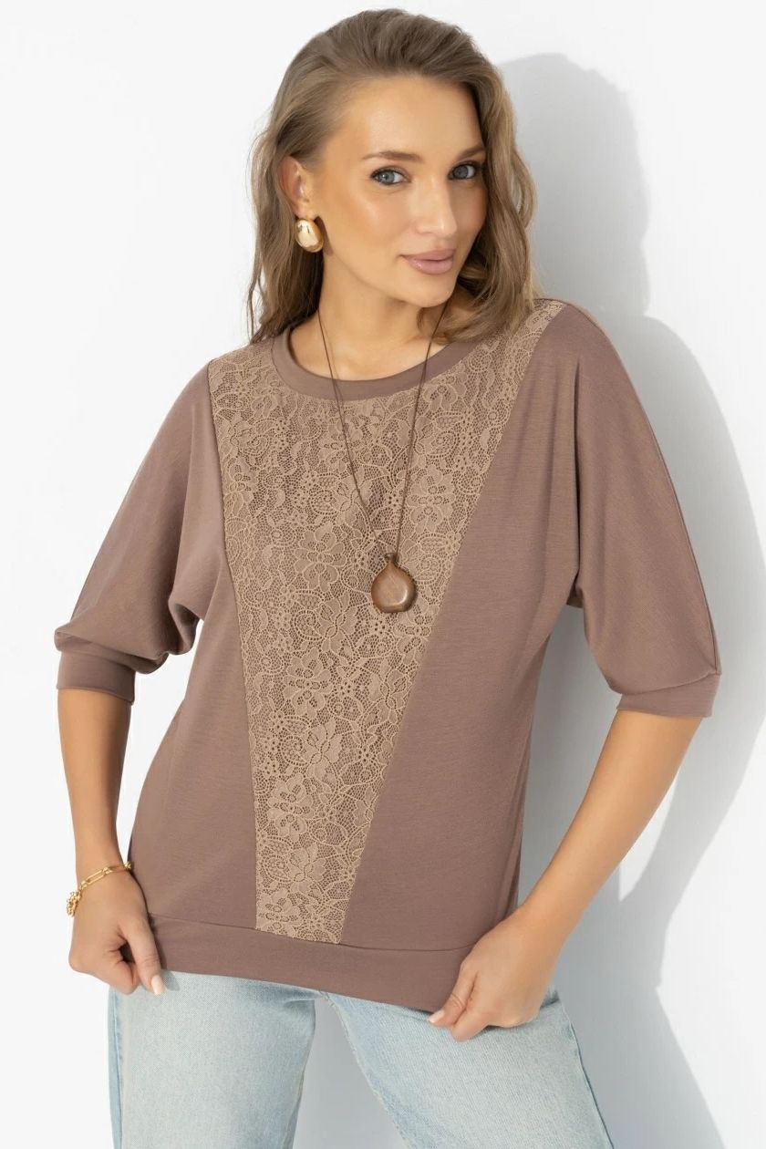 Футболка комбинированная коричневого цвета