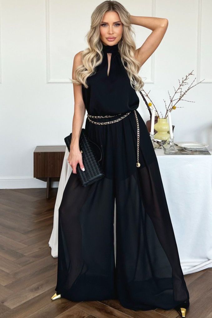 Комбинезон нарядный шифоновый чёрного цвета от производителя Jetty. Верх комбинезона выполнен из дубайского шелка с воротником стойкой и американской проймой.