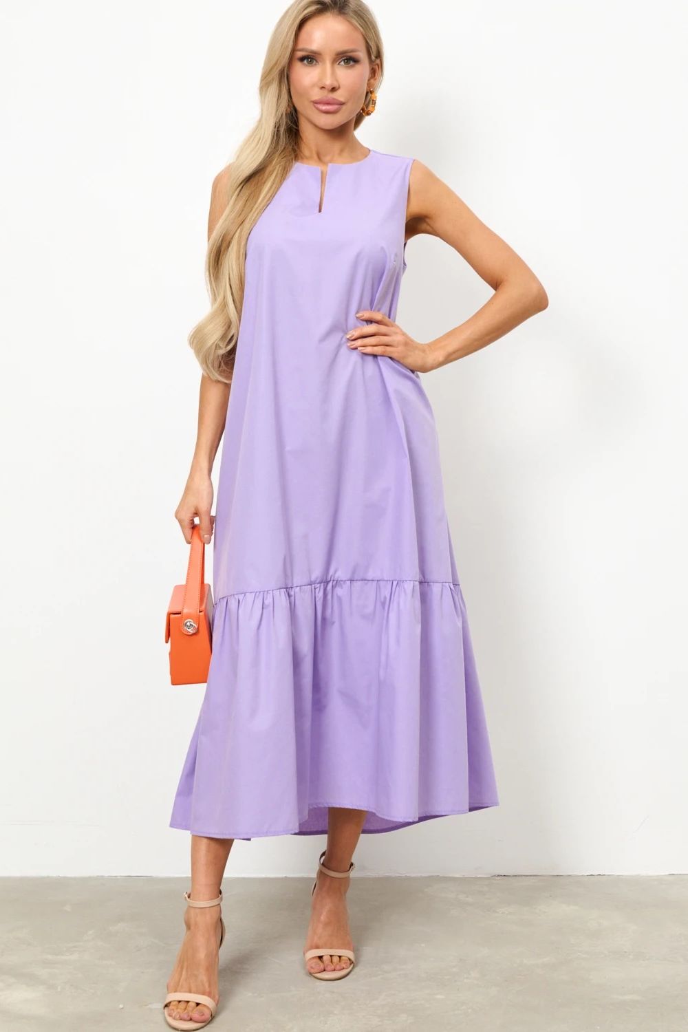 Платье без рукавов сиреневого цвета