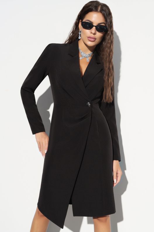 Платье однотонное чёрное на запах