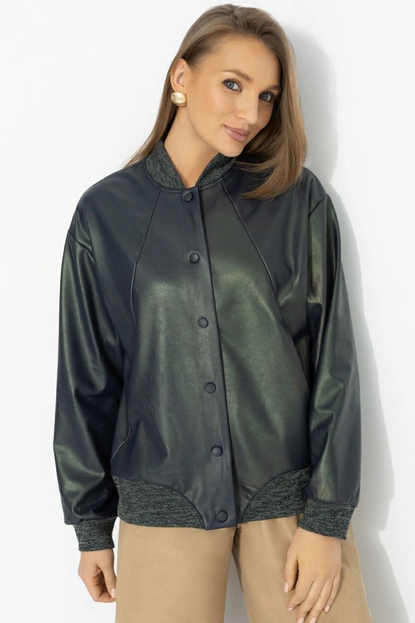 Бомбер зелёный из экокожи