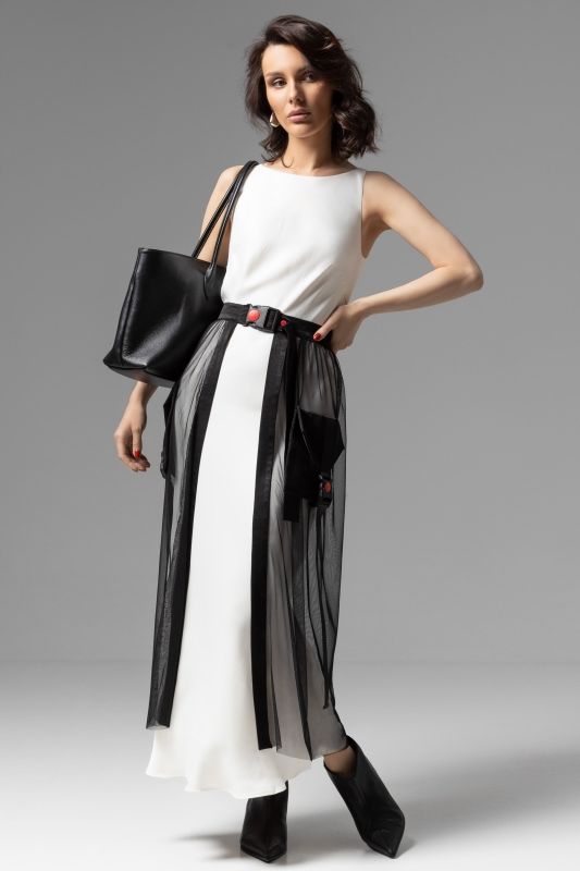 Юбка чёрная из сетки на подкладе из трикотажа от компании Charutti. Модель свободного силуэта, с объемными карманами. Регулируемый пояс в стиле спорт-шик. Безупречная обработка швов изделия. Идеальный выбор для создания стильного образа.